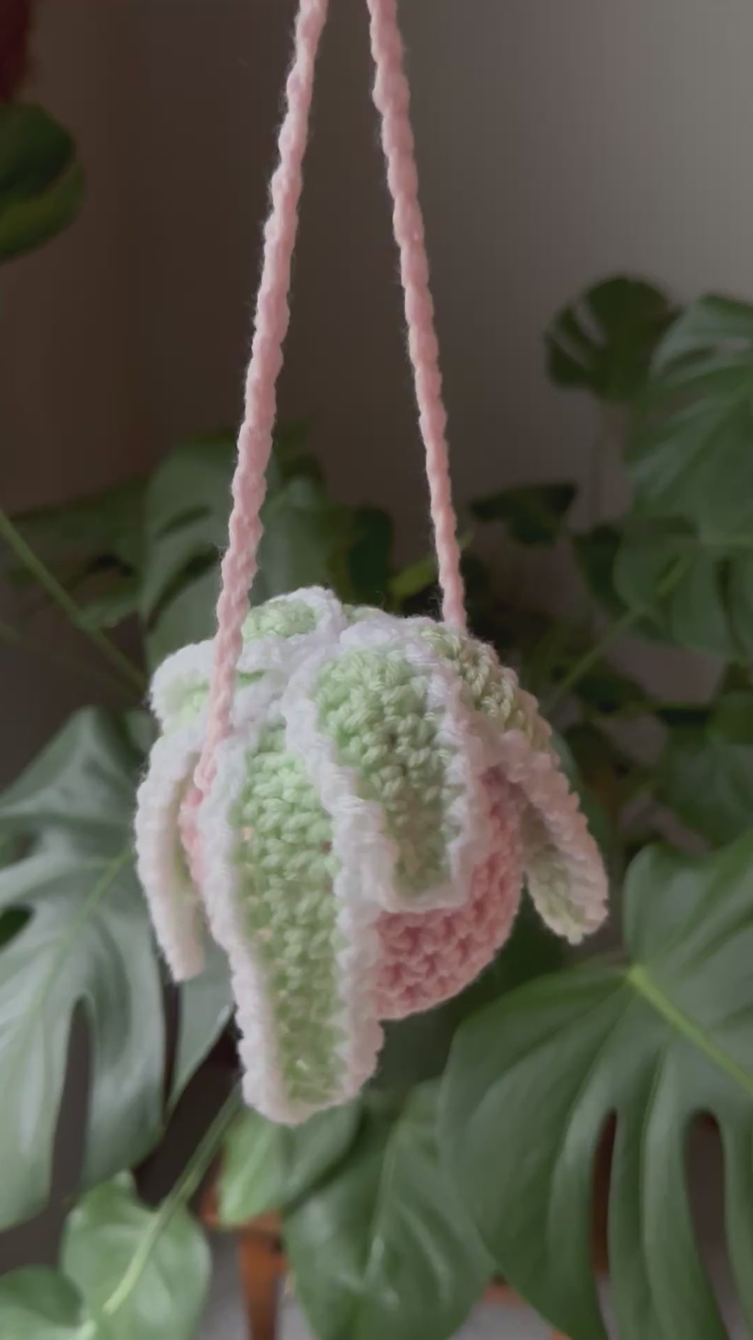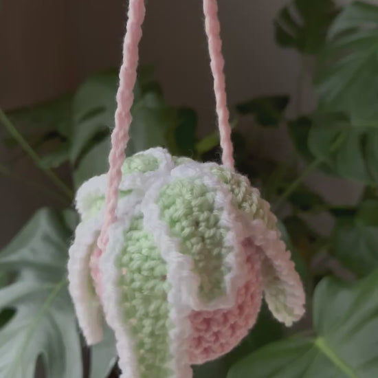 A handmade crochet hanging plant